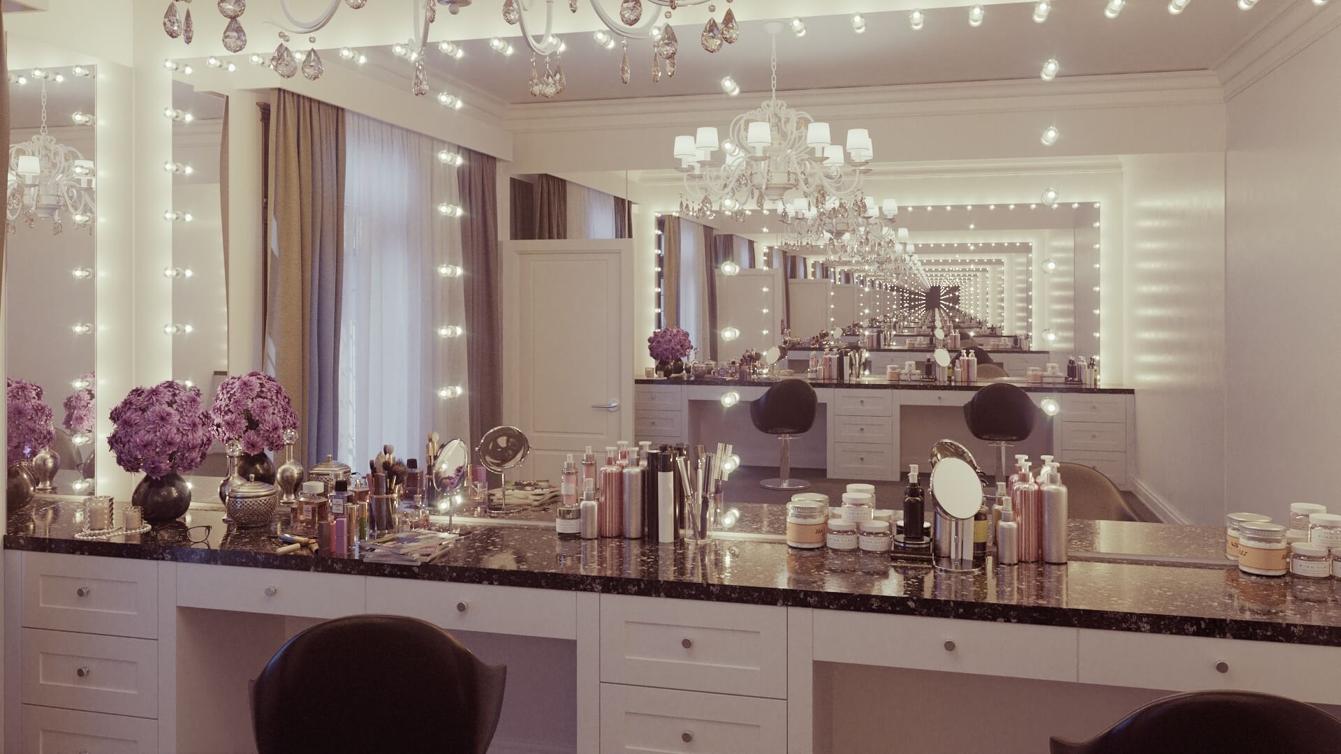 The Hollywood mirror from Grand Mirrors will make you feel like a real life movie star. This is the mirror that offers the best possible bright light for putting on makeup and taking selfies that are absolutely stunning. We gave the classic Hollywood Mirrors a modern makeover by installing bulbs with a lower wattage (3 watts) and a more efficient power supply (12 volts). The Grand Mirrors HOLLYWOOD collection is made to order and can be customized to almost any dimensions and contours. Genuinely unparalleled as a dressing mirror for either the bathroom or the bedroom.